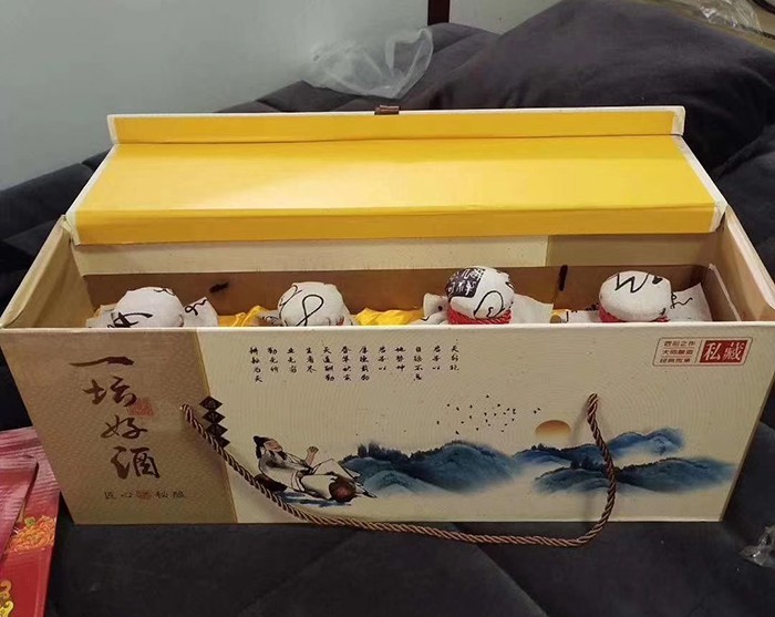 蒙砂酒瓶是在制品玻璃上,粘附一定大小面積的玻璃色釉粉,玻璃瓶廠經(jīng)過580~600℃的高溫烘烤,使玻璃色釉涂層凝結(jié)在玻璃外表,并顯現(xiàn)出具有與玻璃主體不同顏色的一種裝飾辦法。粘附玻璃色釉粉,可用排筆涂刷,亦可用膠輥滾涂。經(jīng)過絲印加工,能夠得到蒙砂面的樓空圖案。 其辦法是:在玻璃制品外表上,絲印一層由阻熔劑構(gòu)成的圖案紋樣。